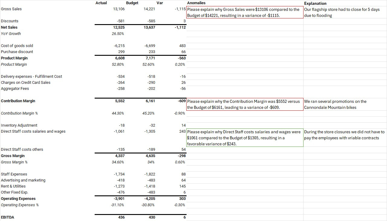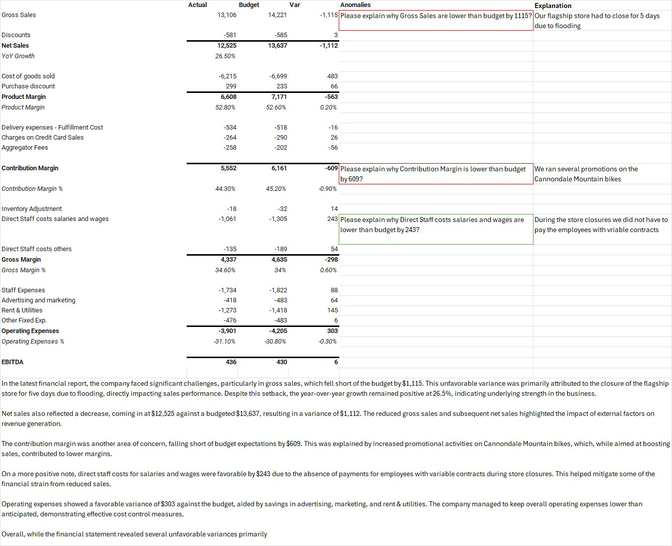I used M365 Copilot in Excel to find anomalies and create a narrative using the =LABS.GENERATIVEAI() function.