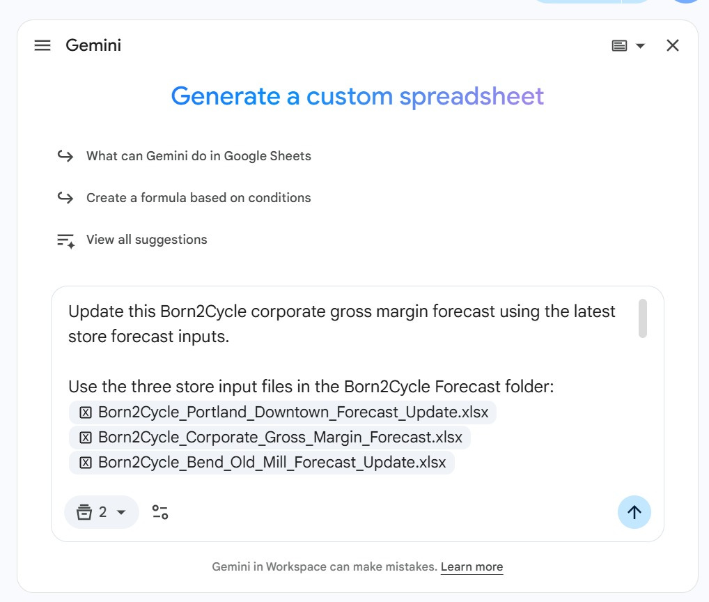 For now, if your team runs on Google Workspace, use Gemini for the things it does well: formula generation, data enrichment, quick analysis questions, and spreadsheet cleanup.