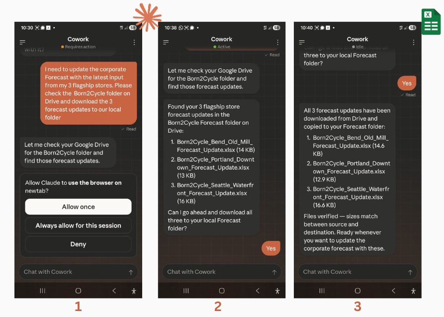 But today, John pulls out his phone and texts Claude. Four steps later, his forecast is updated, the sentiment from all three stores is summarized, and he walks into the CEO meeting prepared.