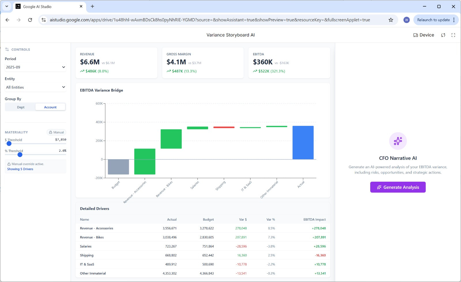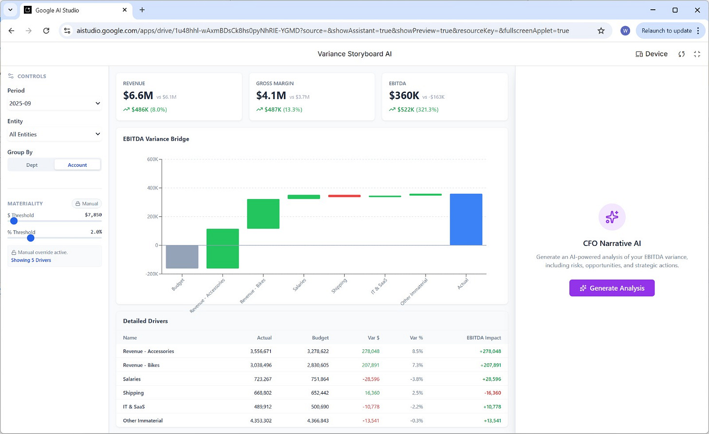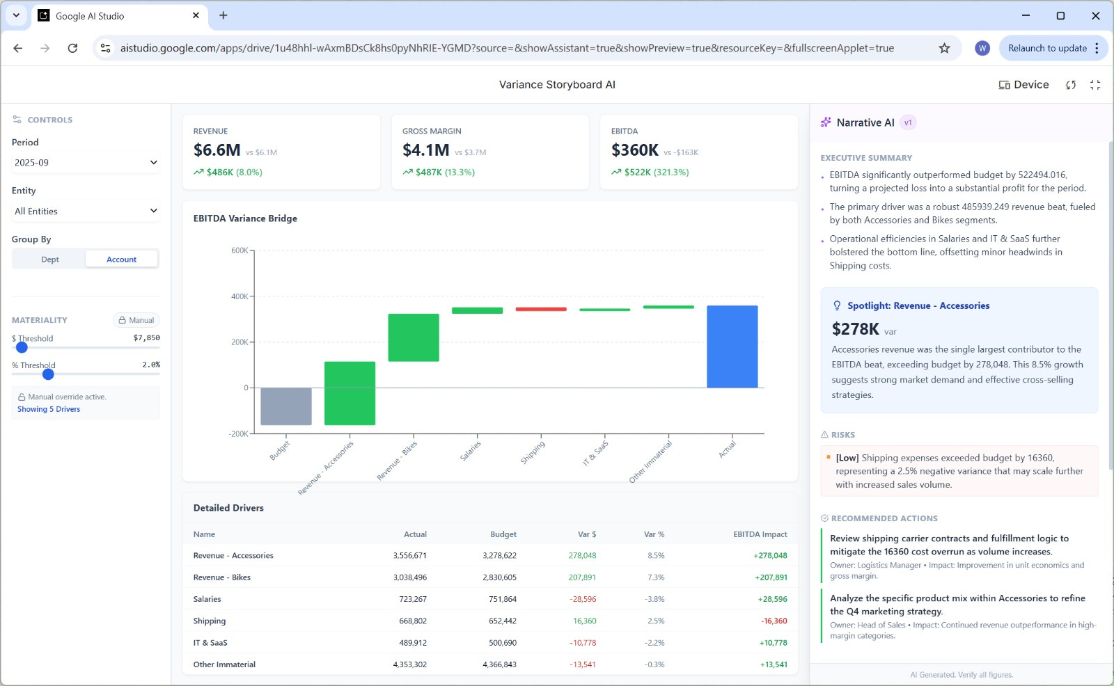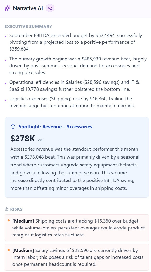Imagine a variance commentary tool that not only organizes numbers but also asks you for clarification, suggests what to highlight, and rewrites your narrative to sound on-brand.